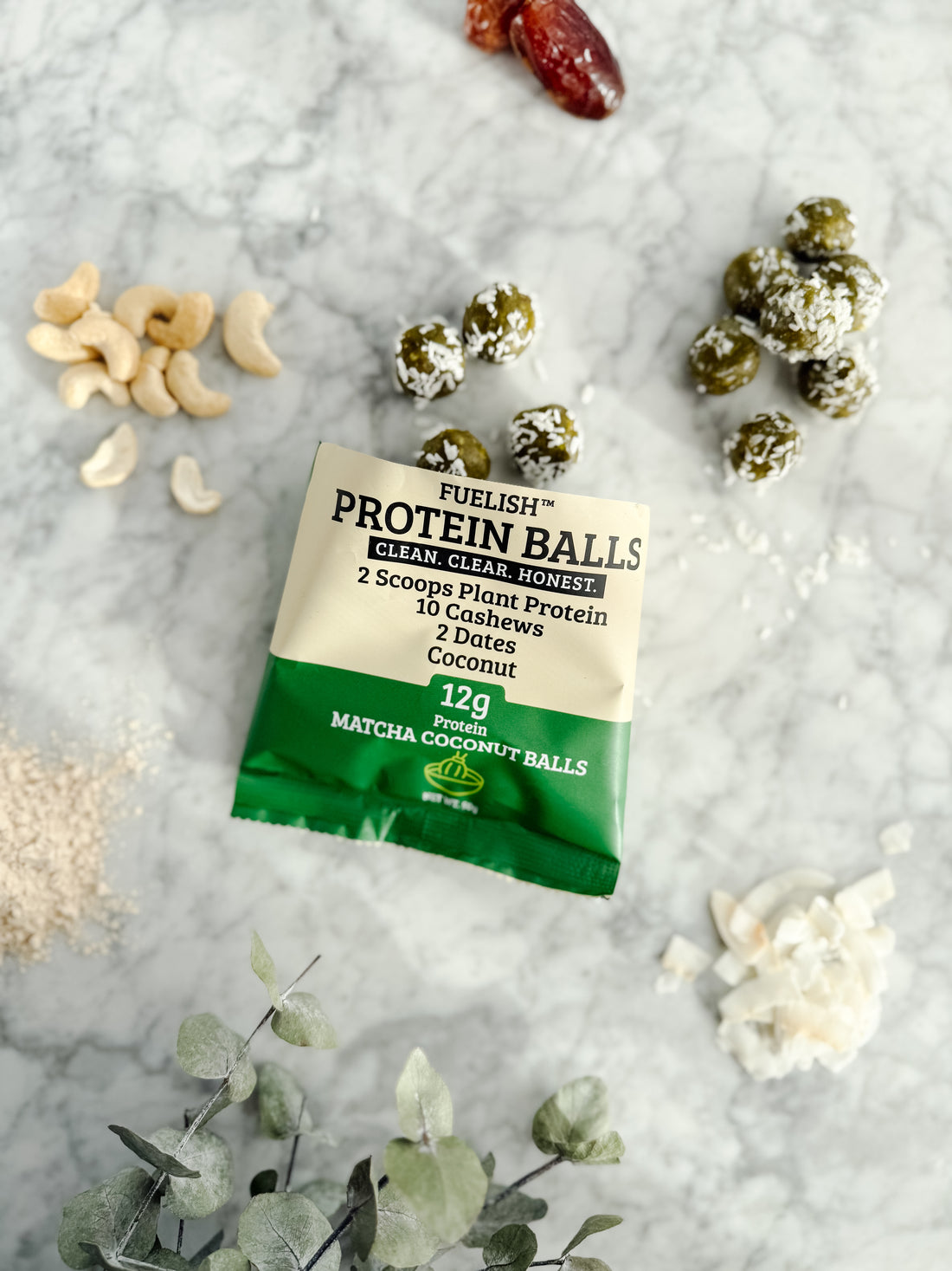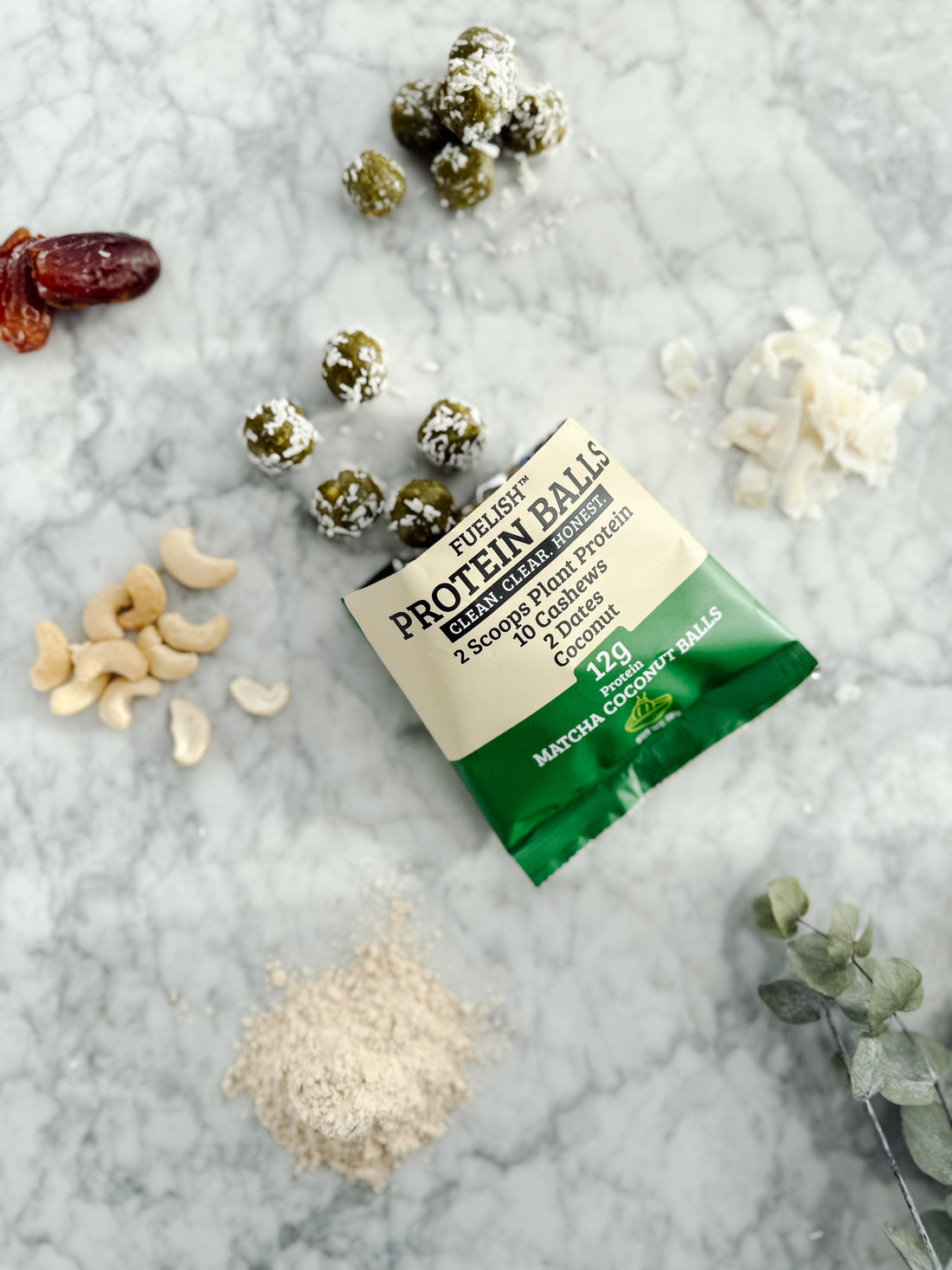 Matcha & Coconut protein balls plantbased
